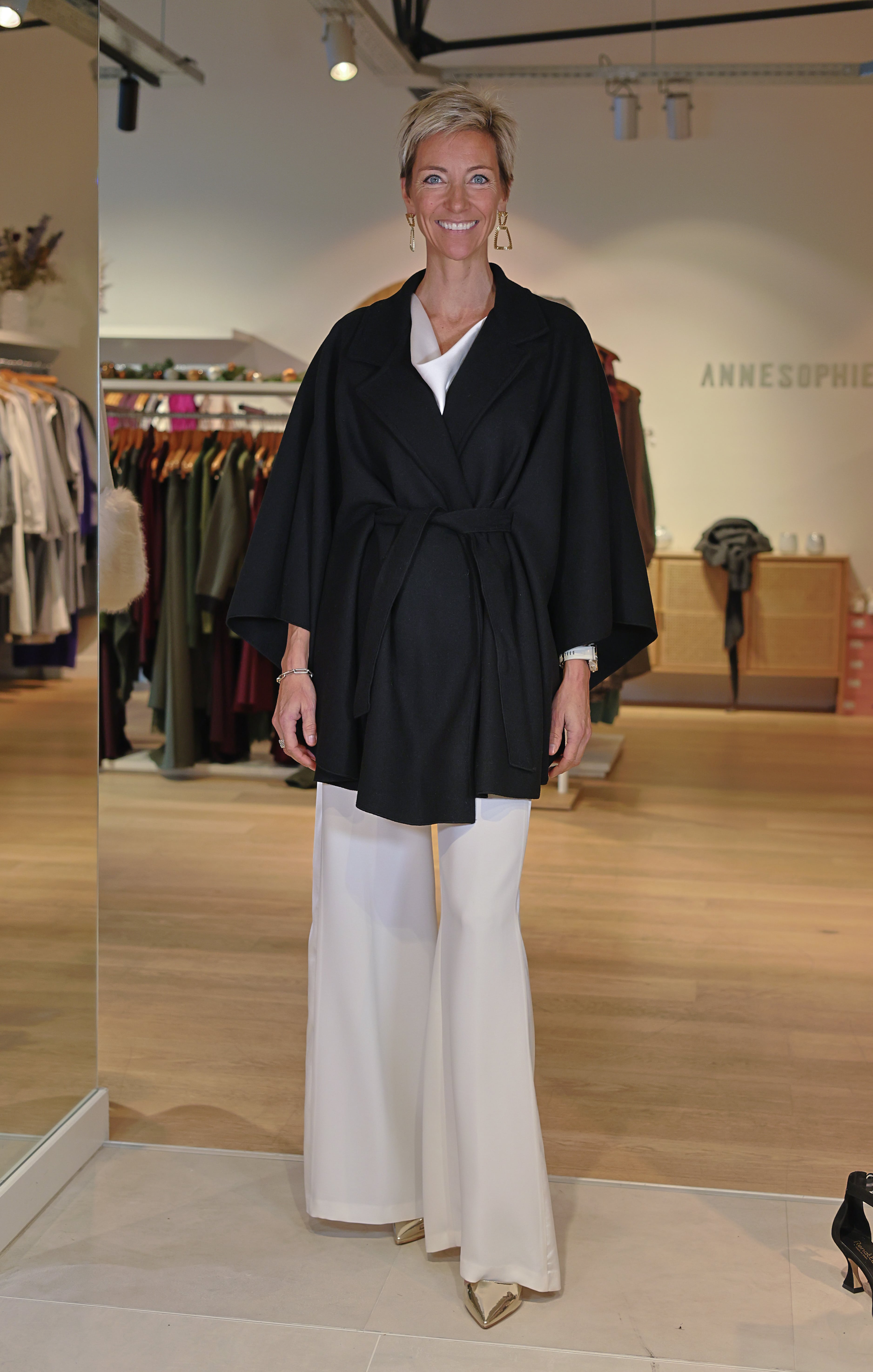 La cape Alméria noire est un incontournable du dressing chic. Sa silhouette fluide, associée à une ceinture qui souligne la taille, crée une allure moderne et raffinée. Polyvalente, elle accompagne aussi bien un look habillé qu’une tenue du quotidien.