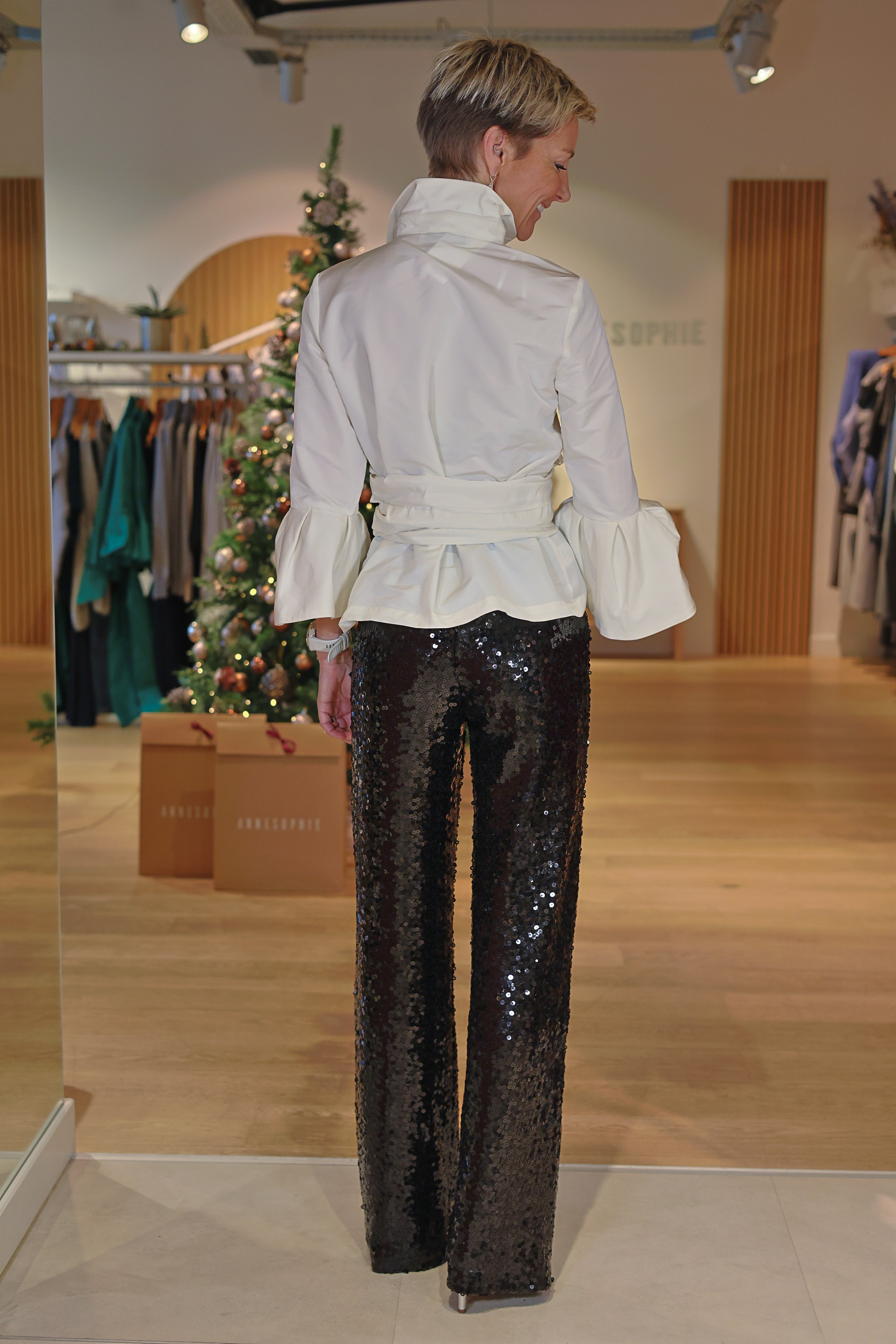 La chemise Roméo blanche séduit par son allure chic et structurée. Son col croisé apporte une touche sophistiquée, tandis que sa ceinture ton sur ton à nouer marque joliment la taille et sublime la silhouette. Les manches longues aux poignets évasés ajoutent une note féminine et élégante, idéale aussi bien pour une tenue habillée que pour un look de fête assumé.