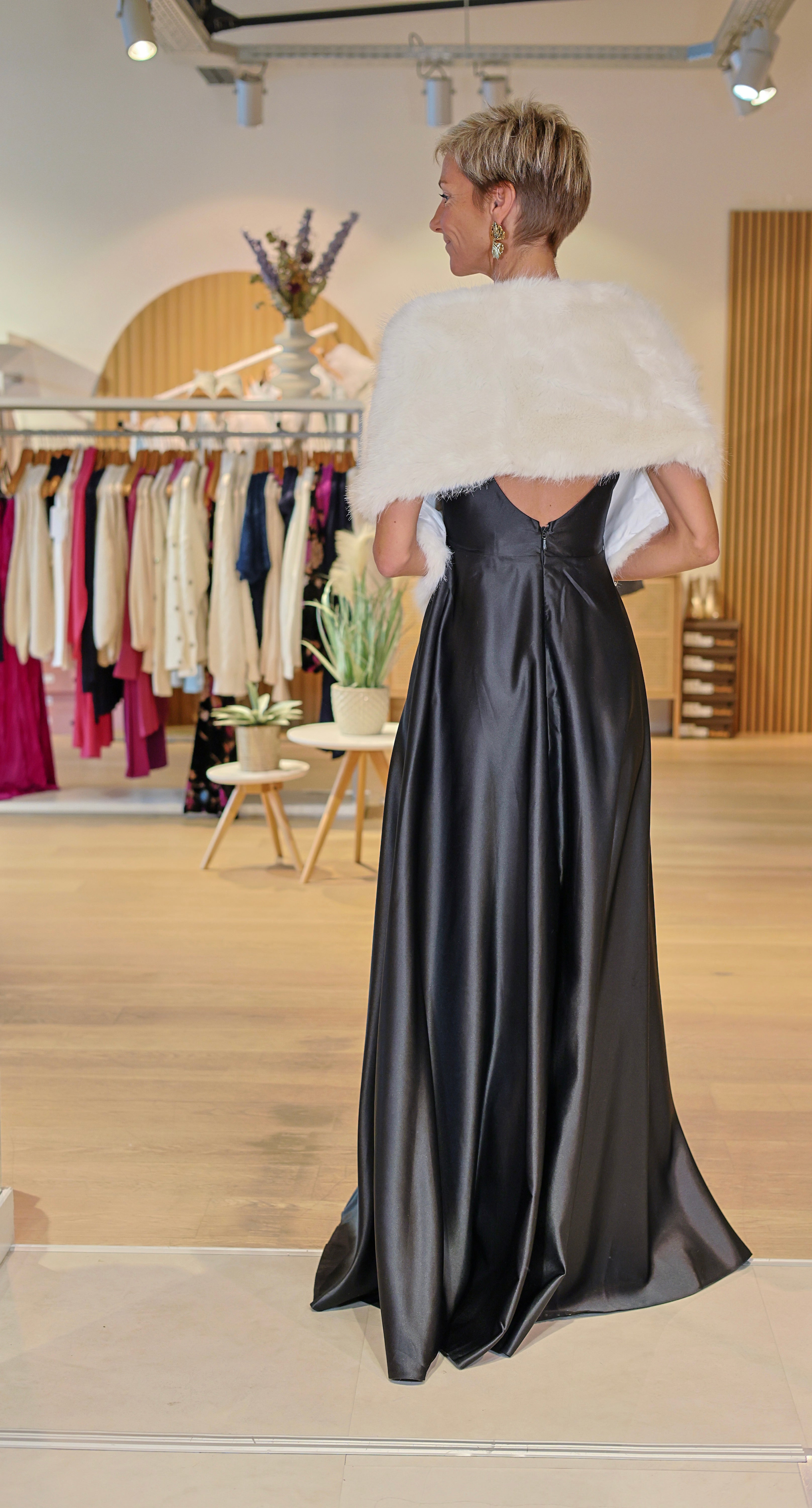 L’étole Kélia blanc est la pièce idéale pour compléter une robe de mariée ou une tenue de cérémonie élégante. En fausse fourrure moelleuse, elle illumine le teint et confère une allure romantique et raffinée. Un accessoire délicat qui allie douceur et élégance, parfait pour les grands jours.