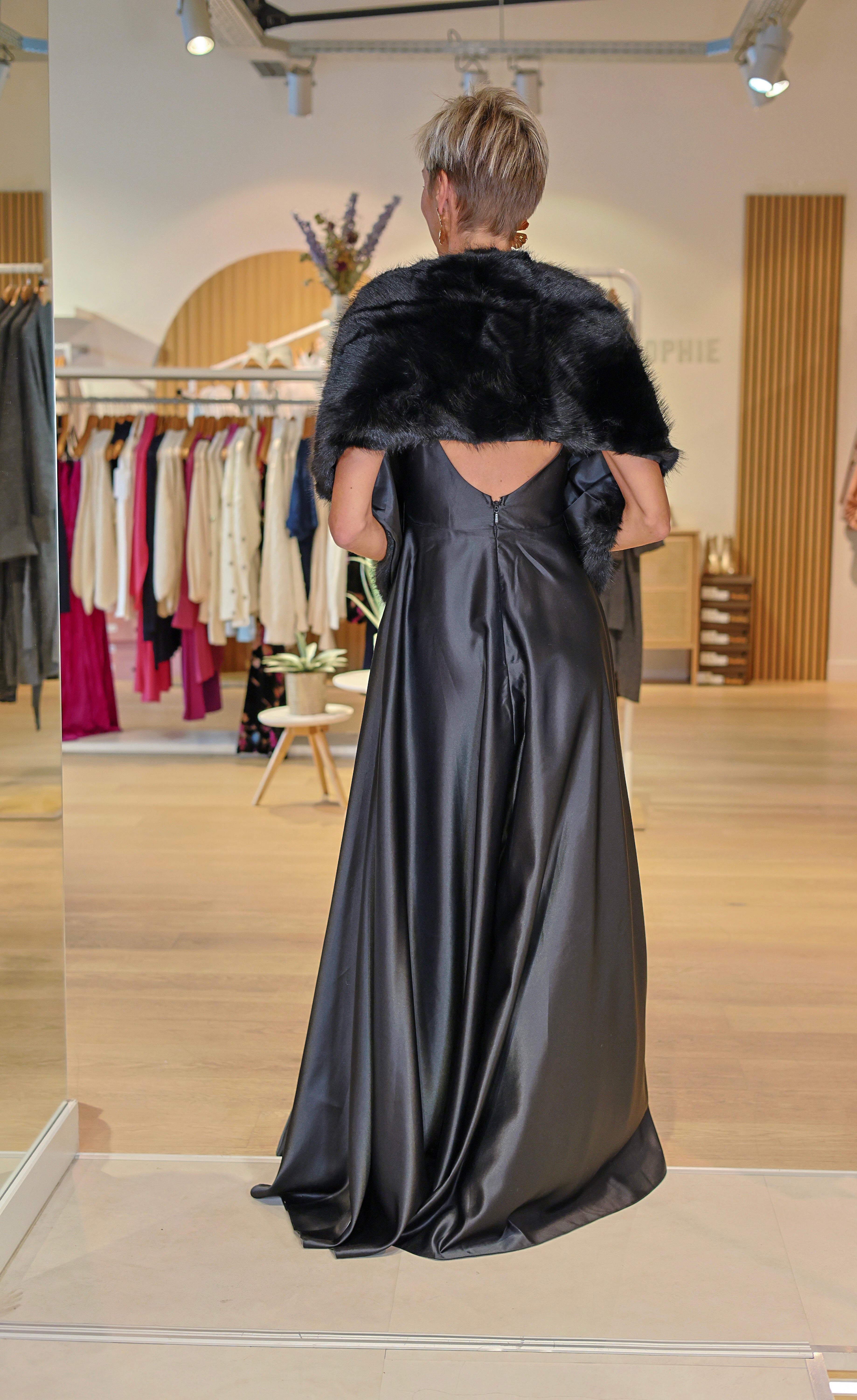 L’étole Kélia noir incarne l’élégance intemporelle. En fausse fourrure soyeuse, elle apporte une touche chic et sophistiquée à toutes vos tenues de soirée. Sa teinte noire profonde s’associe à merveille avec les robes de cérémonie ou les ensembles habillés, pour un look glamour et raffiné.