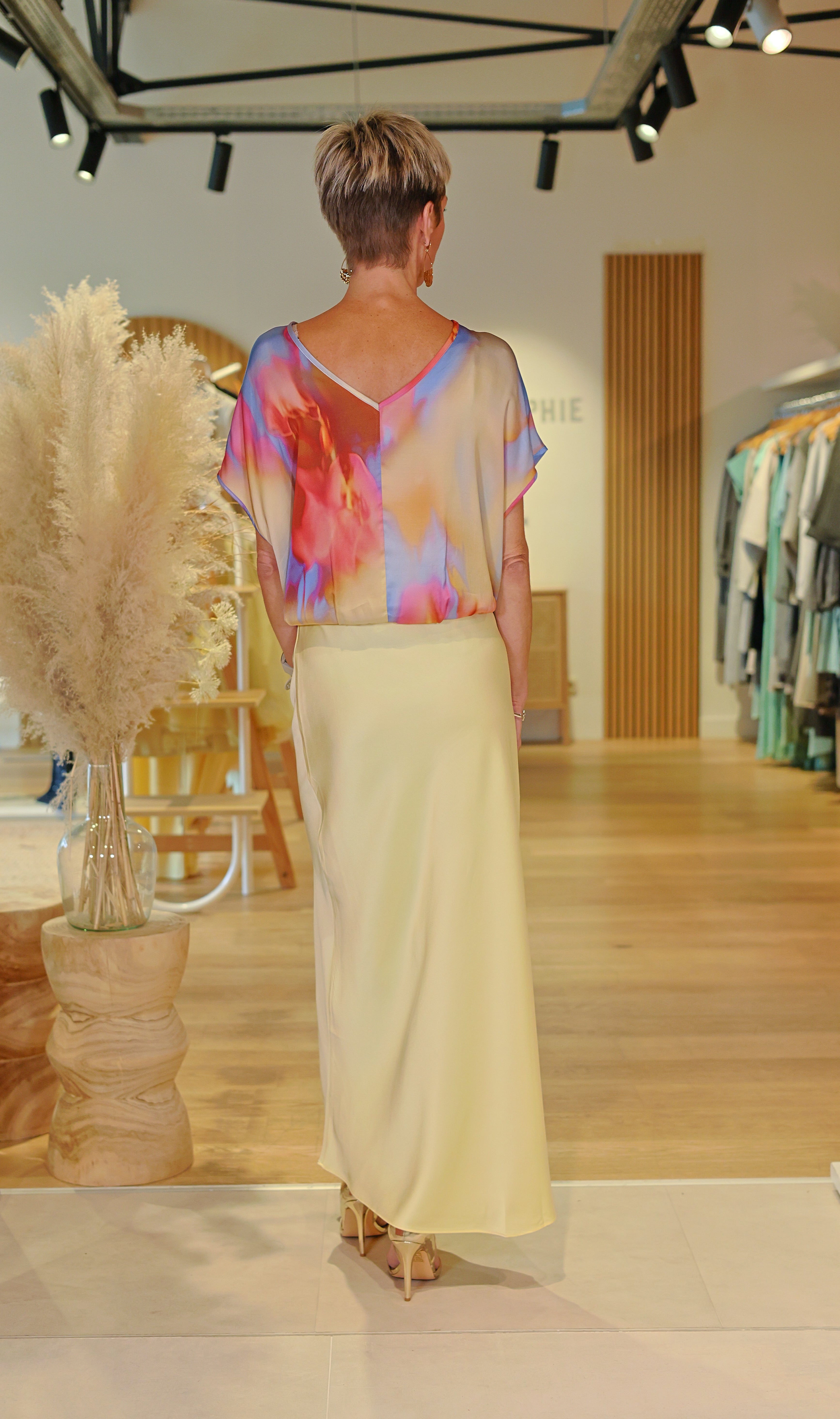 La jupe Garance est une jupe longue fluide au coloris jaune beurre, doux et ultra lumineux. Sa matière légère au tombé soyeux apporte une élégance naturelle et féminine. Entièrement dotée d’une taille élastiquée, elle assure un confort optimal tout en s’adaptant parfaitement à la silhouette. Une pièce facile à associer, idéale aussi bien pour un look chic du quotidien que pour une tenue plus habillée.