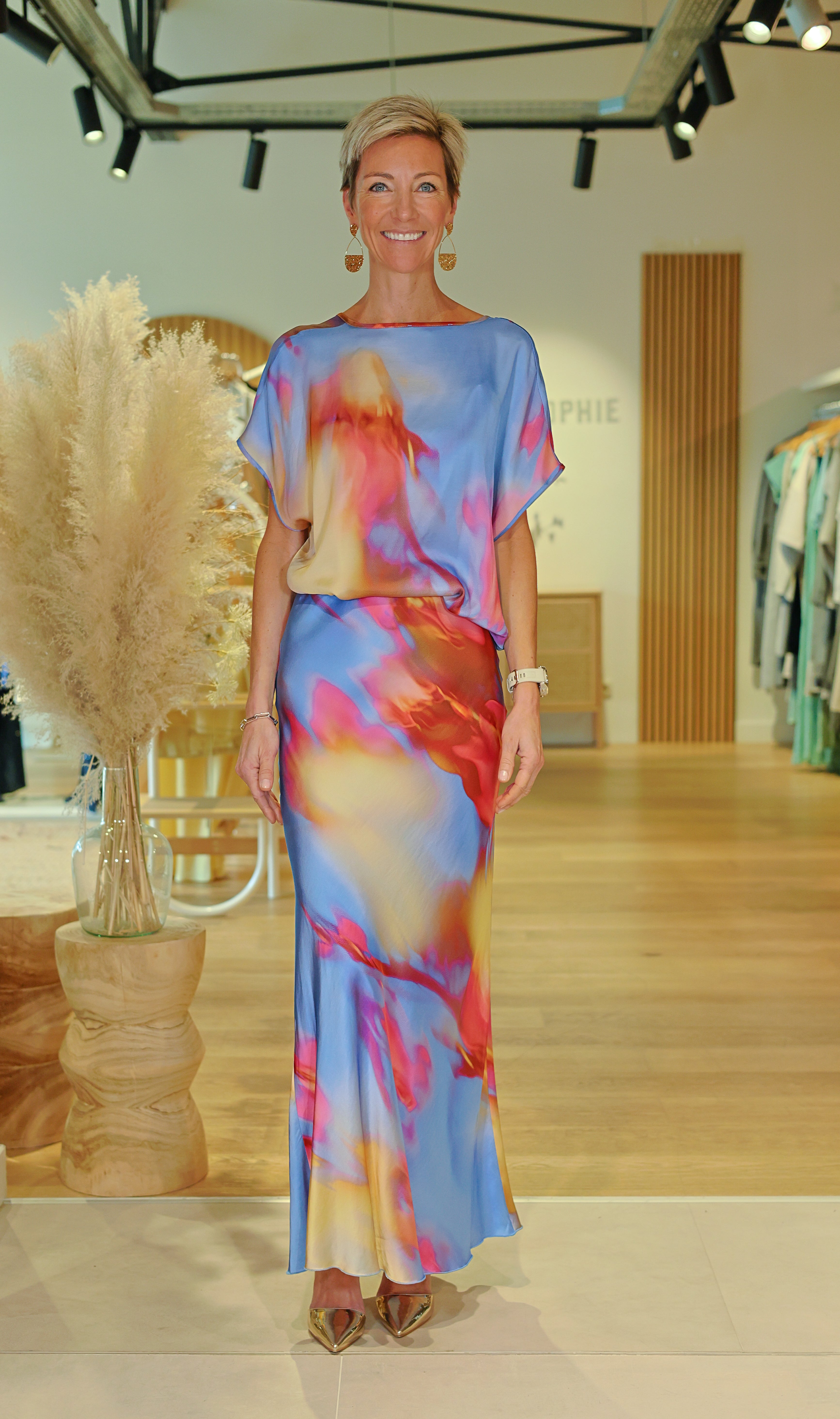 La jupe Lilou est une jupe longue fluide au tombé élégant, parfaite pour sublimer la silhouette avec légèreté. Sa matière soyeuse et son imprimé coloré harmonieux apportent une touche sophistiquée et féminine. Grâce à sa taille élastiquée, elle offre un confort optimal tout en s’adaptant naturellement aux formes.