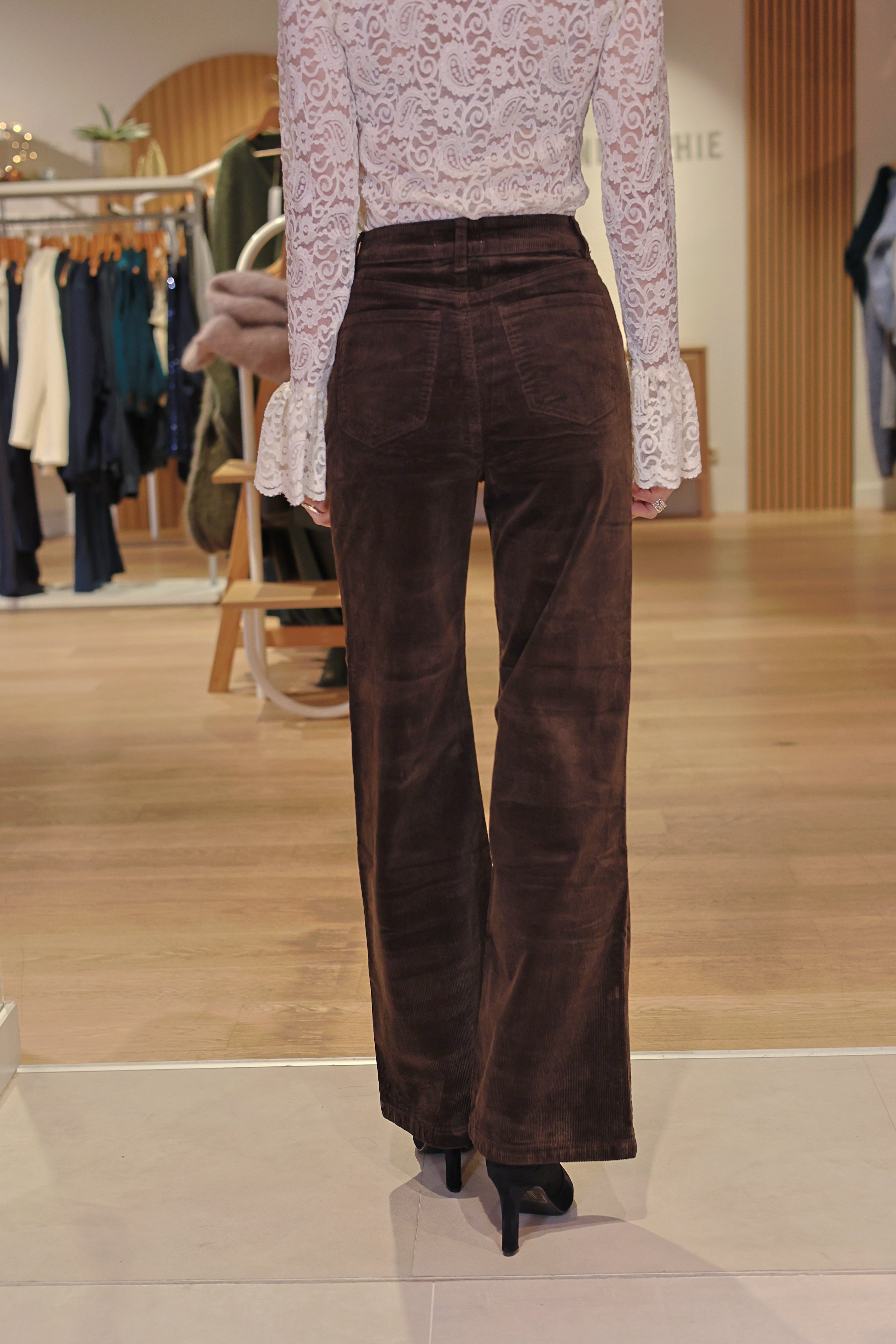 Le pantalon Jude en velours côtelé brun chocolat est une pièce à la fois élégante et intemporelle. Sa matière douce et chaleureuse apporte une allure chic et raffinée, parfaite pour la saison automne-hiver. Sa coupe droite légèrement évaséeallonge la silhouette tandis que sa taille haute structure la ligne avec élégance. Un essentiel du dressing féminin, facile à associer aussi bien avec une blouse habillée qu’un pull plus casual.
