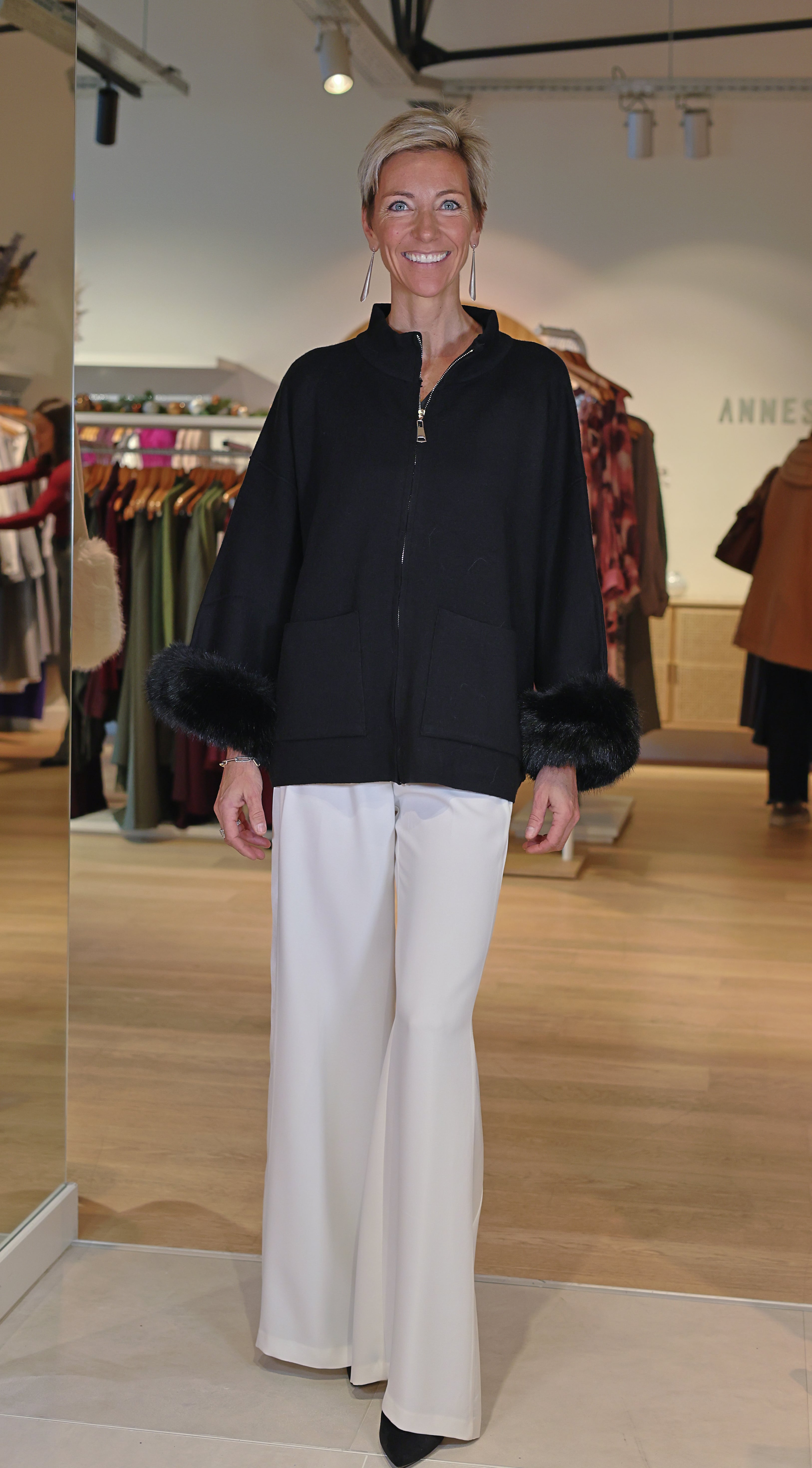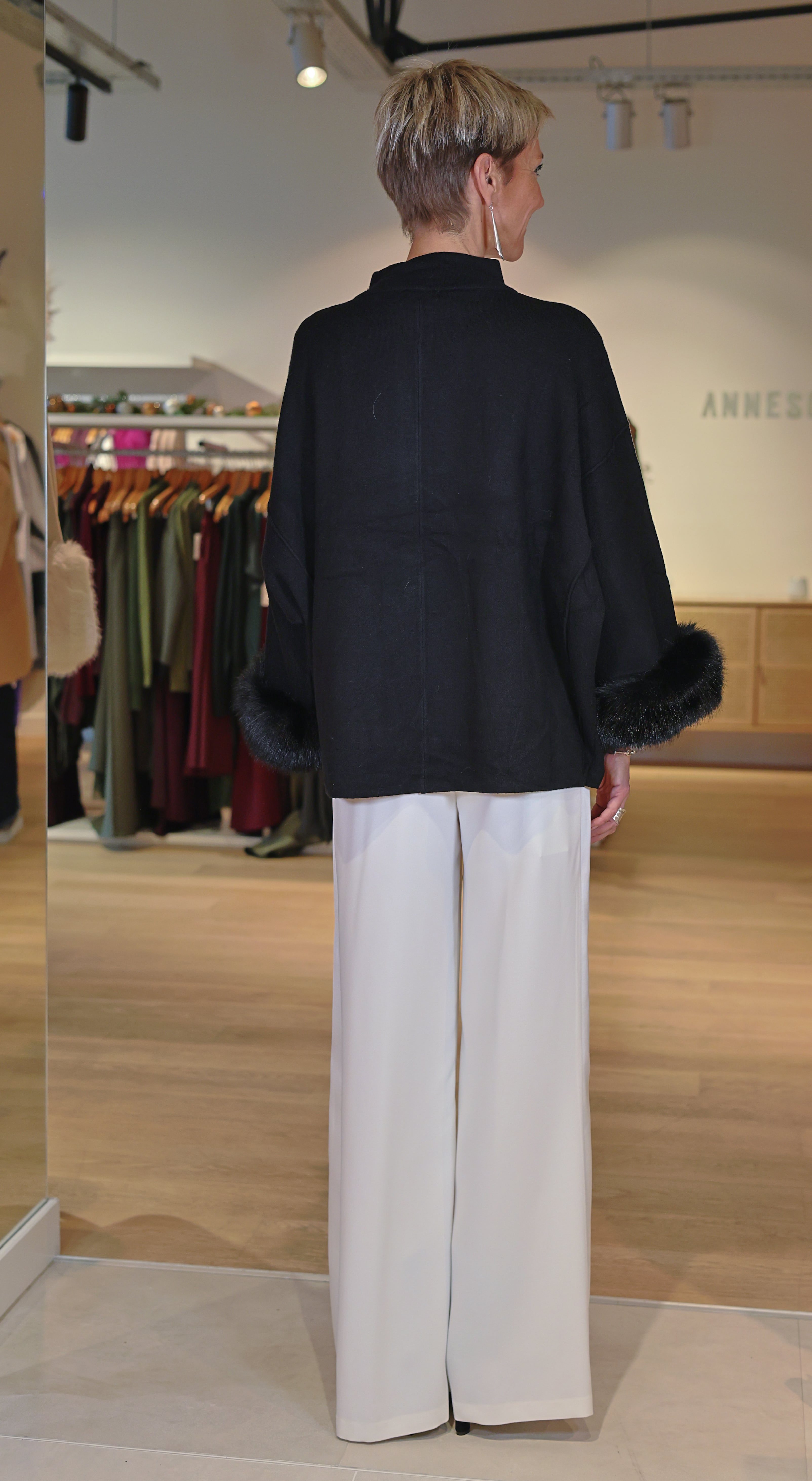 Le pull Mayla noir incarne l’élégance moderne avec sa coupe ample et structurée. Confortable et ultra-chic, il se distingue par ses poignets habillés de fourrure synthétique, apportant une touche couture irrésistible. Idéal pour sublimer une tenue du quotidien comme pour une silhouette plus habillée.