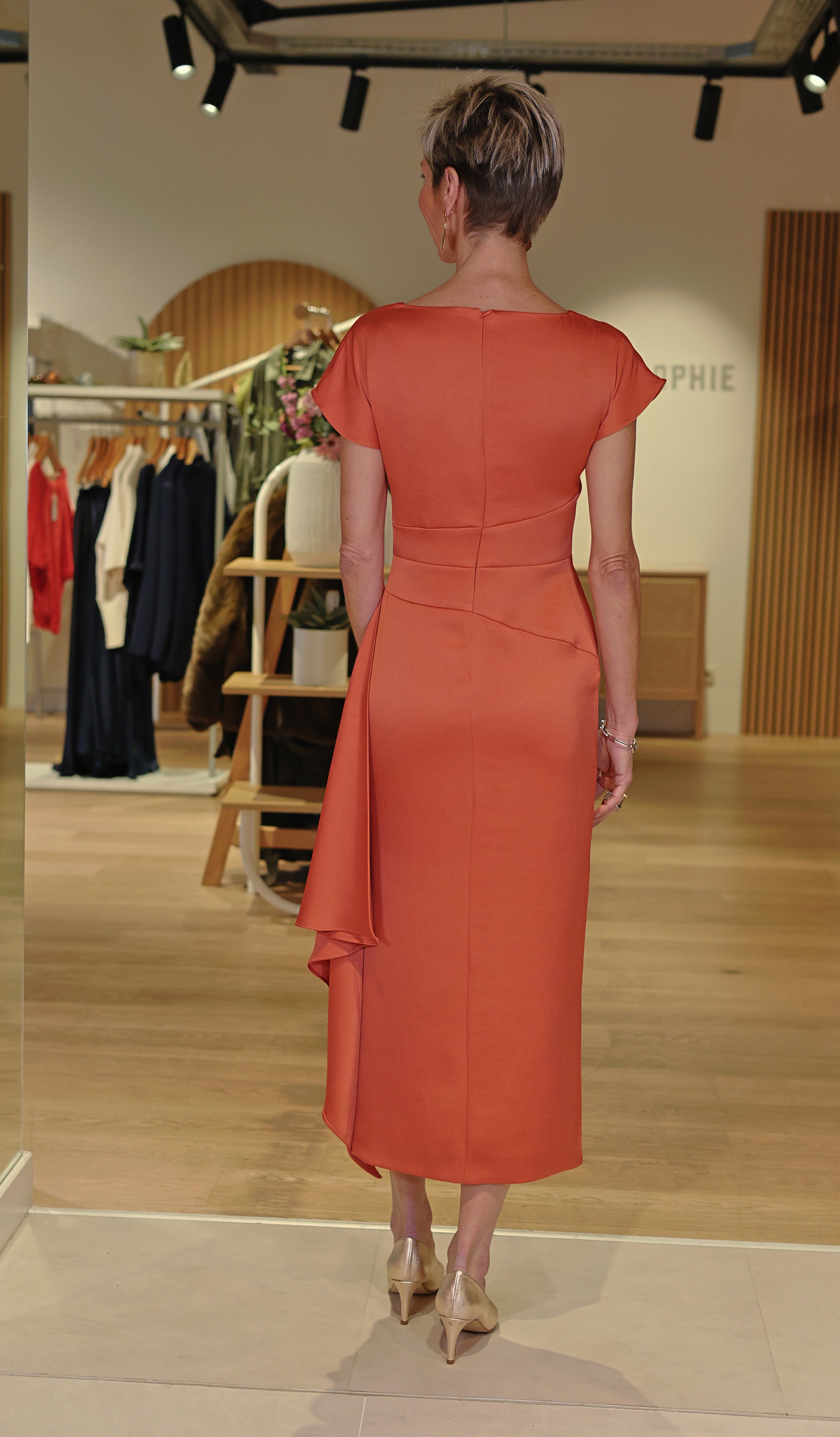 La robe Rosaly corail incarne l’élégance chaleureuse et féminine. Son coloris lumineux sublime le teint, tandis que sa coupe structurée et ses drapés délicats dessinent une silhouette flatteuse. Une robe idéale pour une cérémonie, un mariage ou une soirée chic.