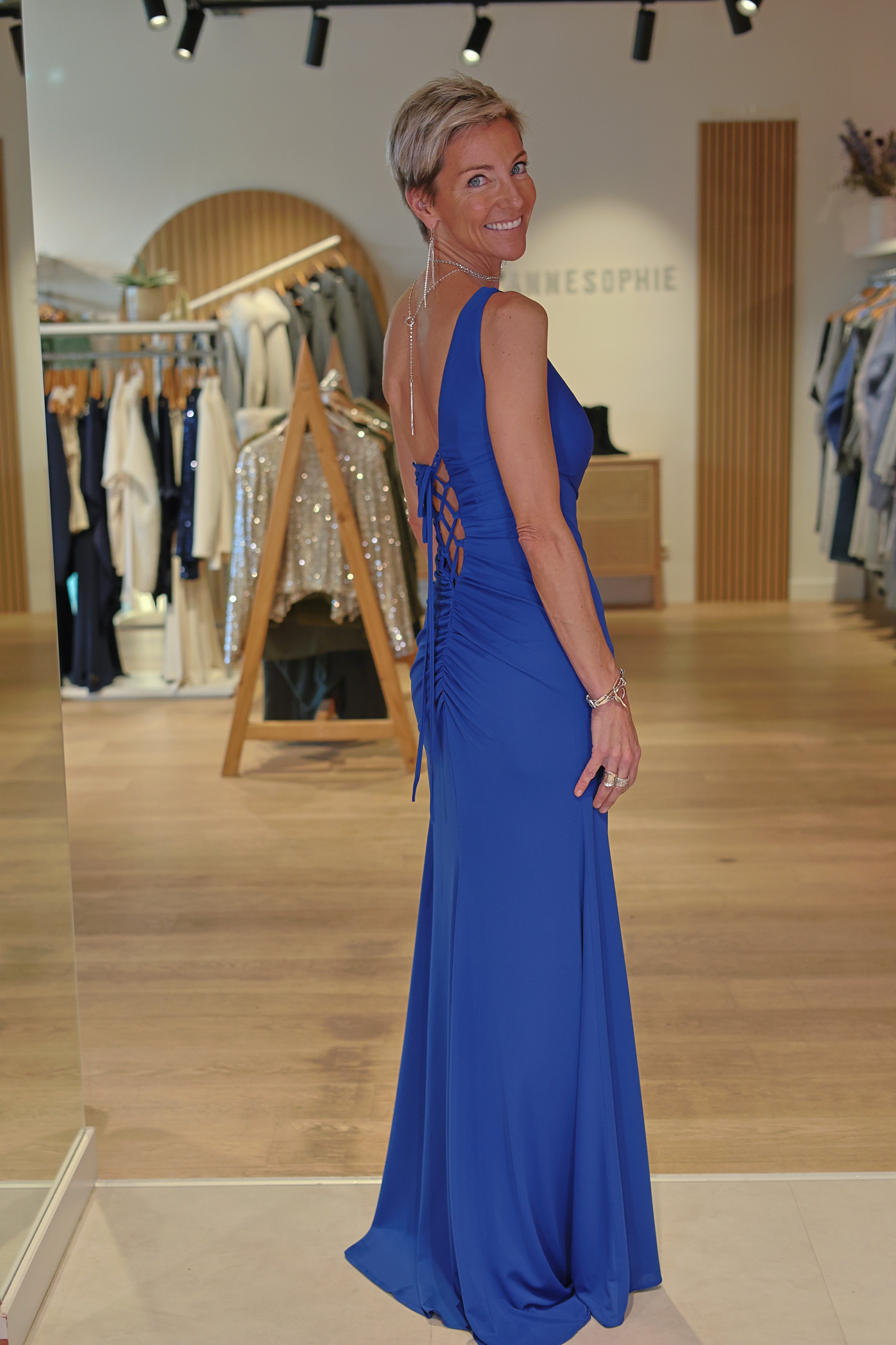 La robe Sam bleu royal est une pièce spectaculaire, pensée pour sublimer les grandes occasions. Sa coupe longue fluideépouse parfaitement la silhouette tandis que son décolleté asymétrique une épaule apporte une élégance moderne et affirmée. Le bleu royal, intense et lumineux, attire le regard et met en valeur toutes les carnations. Son dos lacé froncé, délicatement ajustable, ajoute une touche sensuelle et sophistiquée. Une robe de soirée incontournable pour briller avec élégance.