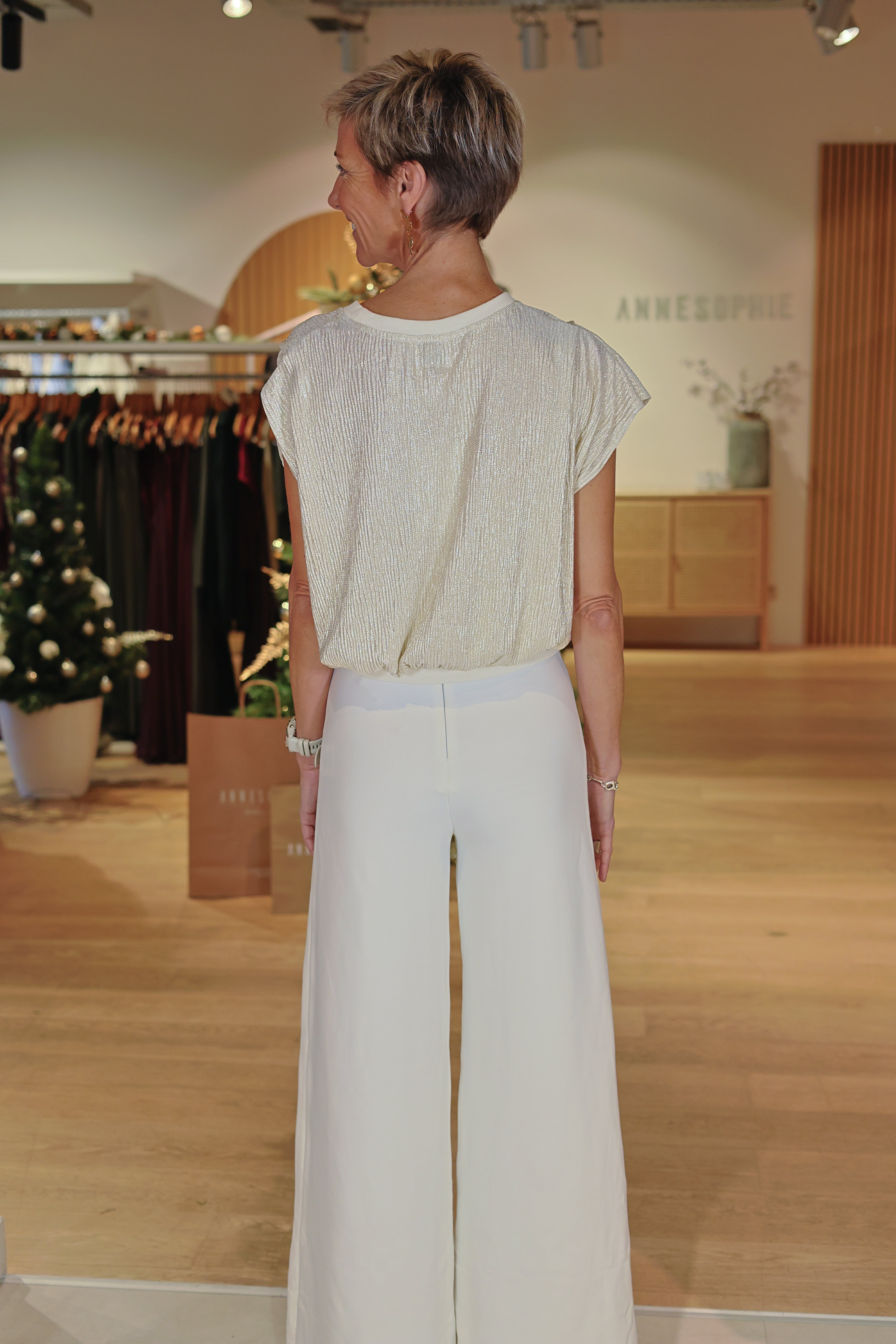 Laissez-vous séduire par le Top Adèle, un modèle chic et moderne qui illumine instantanément la silhouette. Sa matière fluide et légèrement brillante offre un effet doré subtil, idéal pour les fêtes, un dîner élégant ou simplement pour apporter une touche sophistiquée à vos tenues du quotidien.