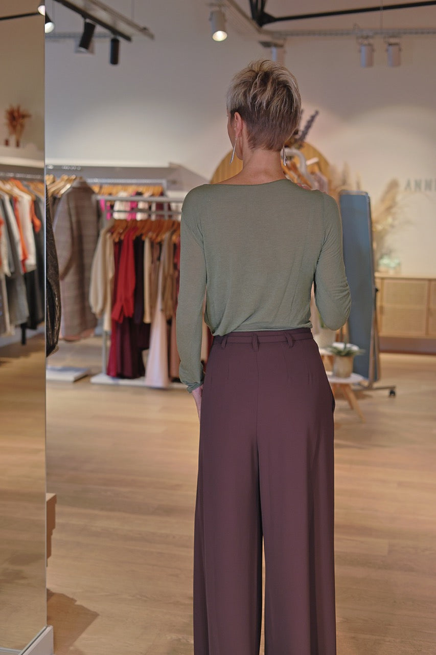 Le top Alyona kaki revisite les basiques avec une teinte naturelle et un toucher cachemire d’une grande douceur. Léger et raffiné, il apporte une touche de modernité tout en restant confortable et facile à assortir.