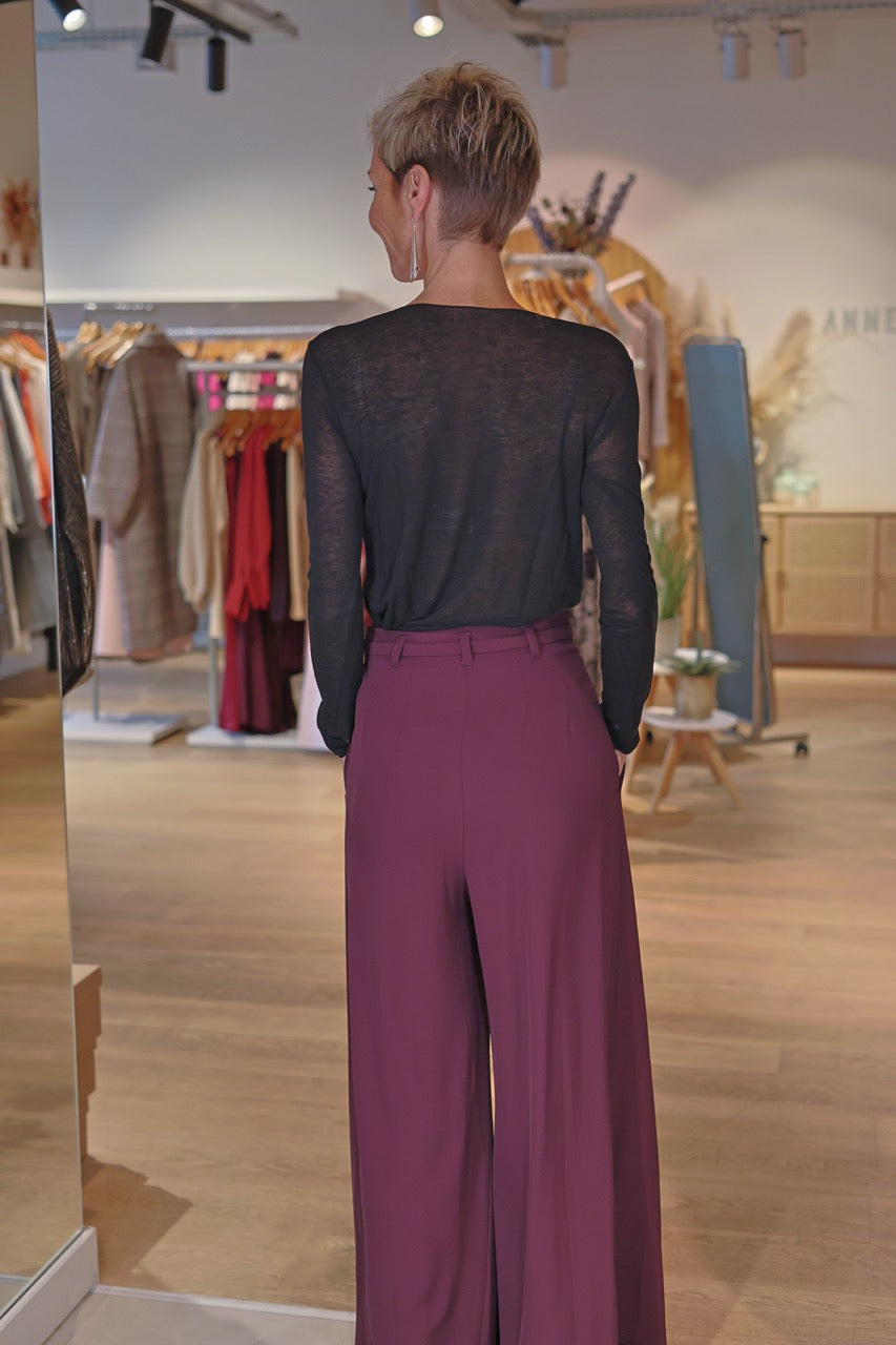 Le top Alyona noir allie élégance intemporelle et confort absolu. Grâce à sa fine matière contenant du cachemire, il offre une sensation seconde peau. Sa coupe sobre et son coloris profond en font un incontournable du dressing féminin.