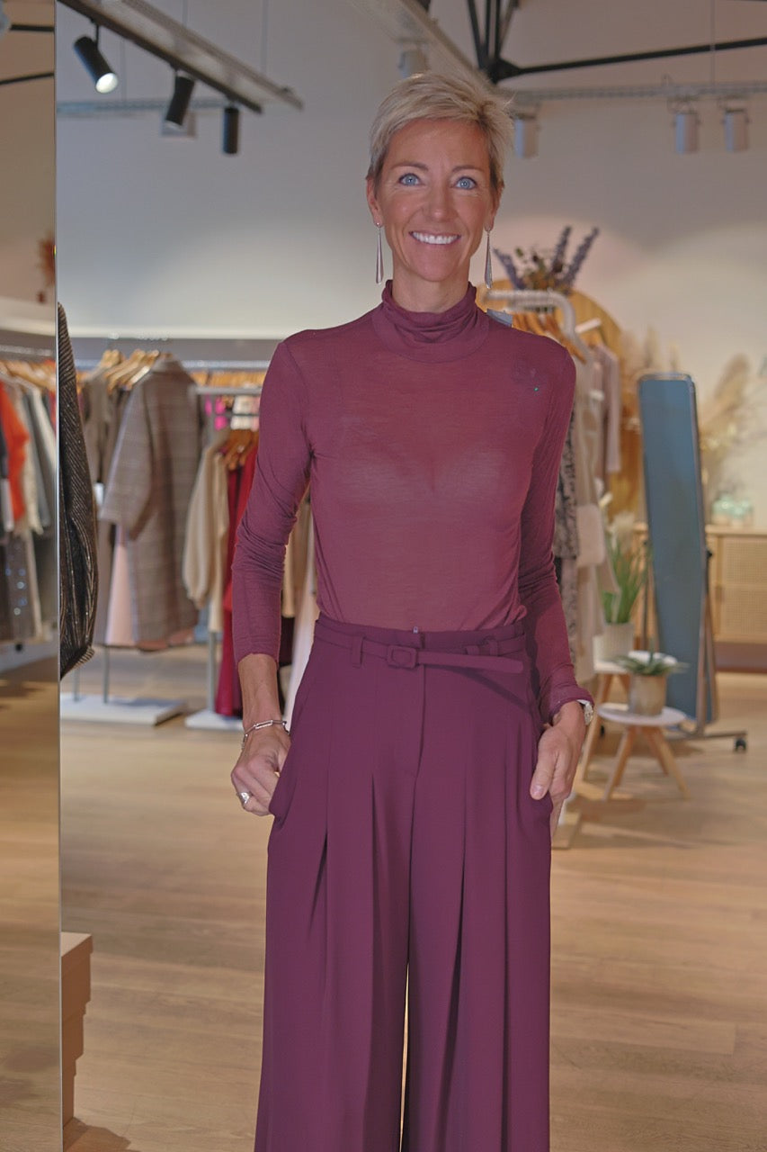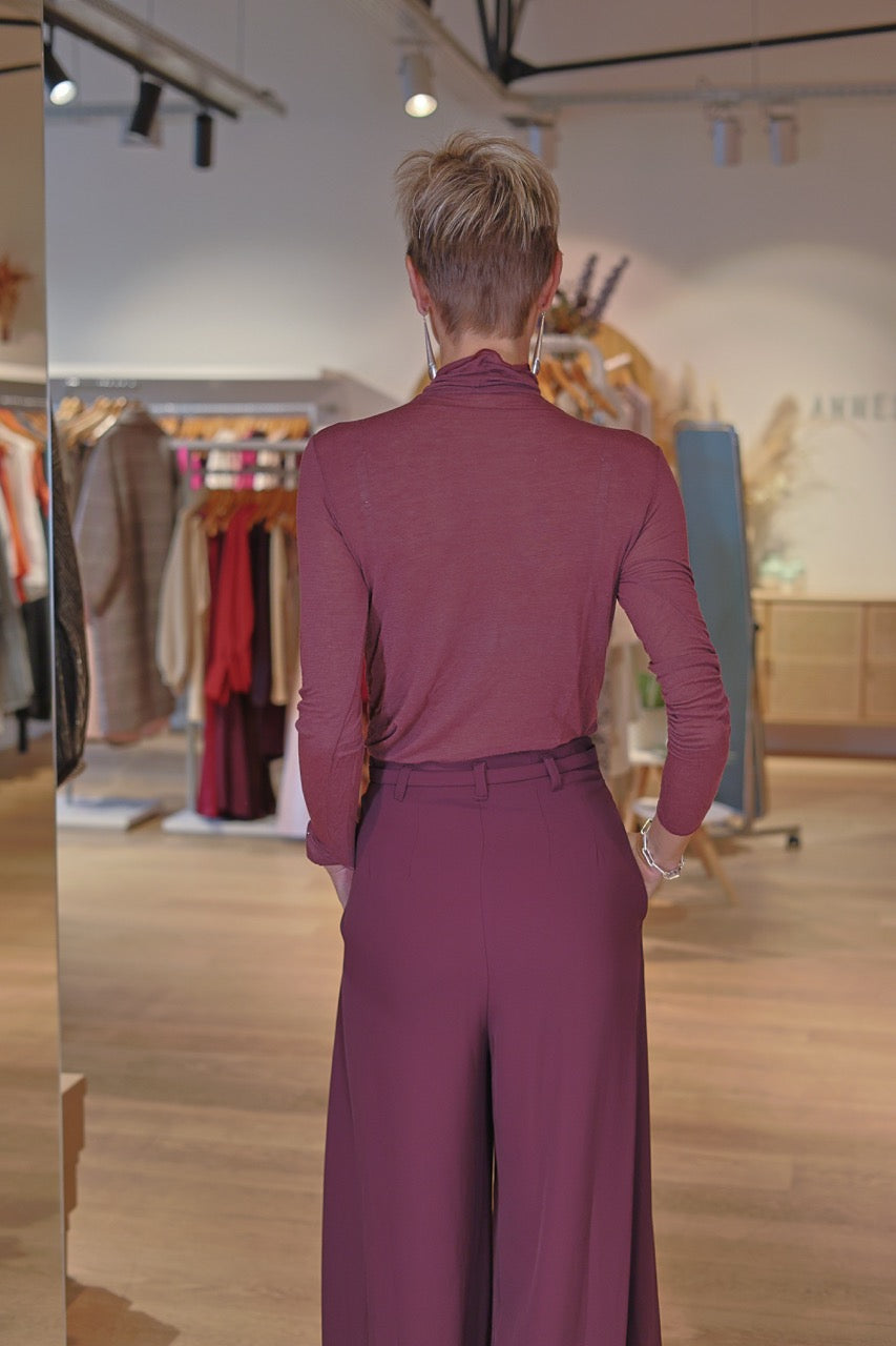 Le top Mérina bordeaux séduit par sa couleur profonde et chaleureuse et sa texture soyeuse enrichie de cachemire. Léger et près du corps, il s’adapte à toutes vos envies : sous une veste, un pull oversize ou seul pour un look sophistiqué. Son col roulé fin allonge la silhouette avec élégance.