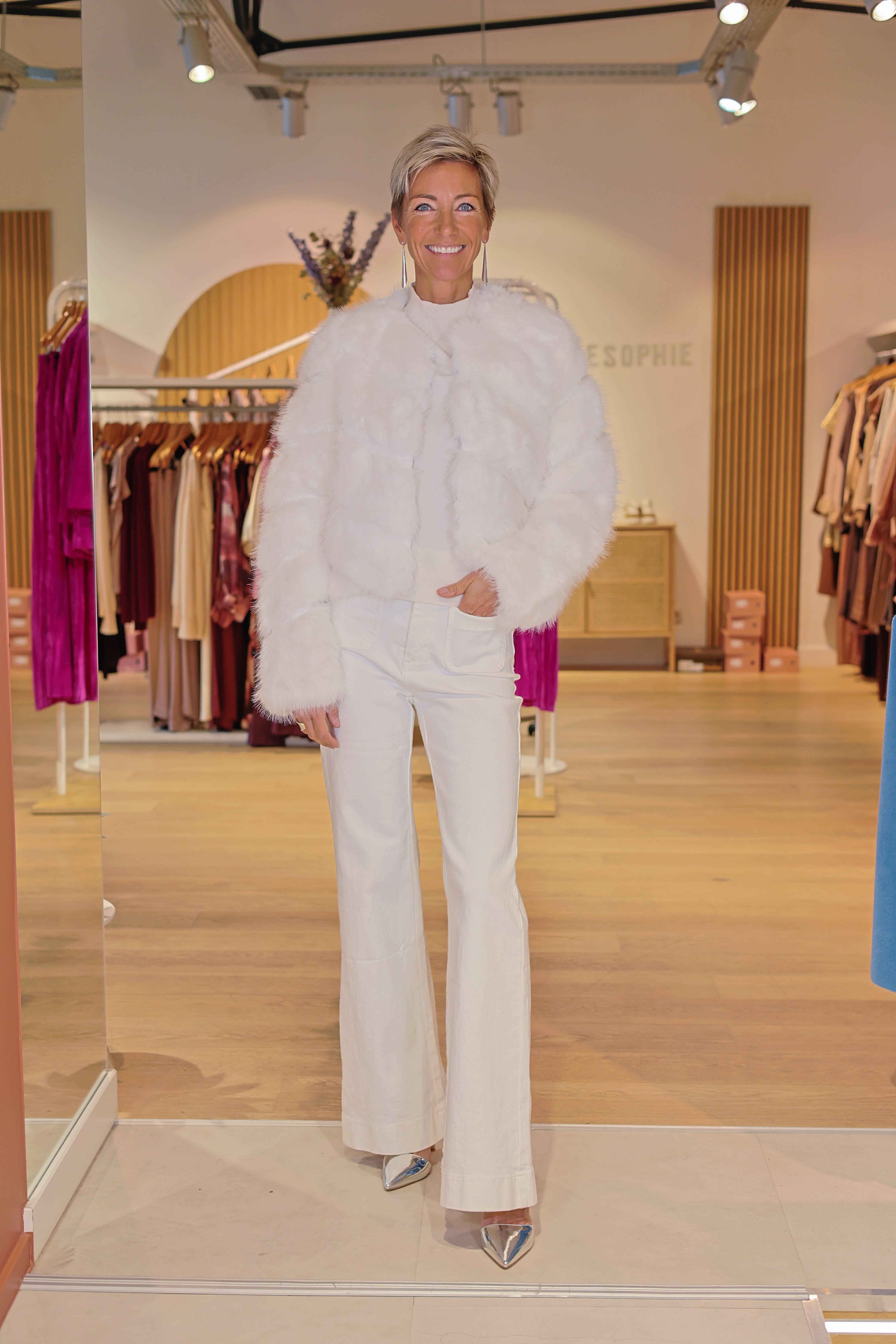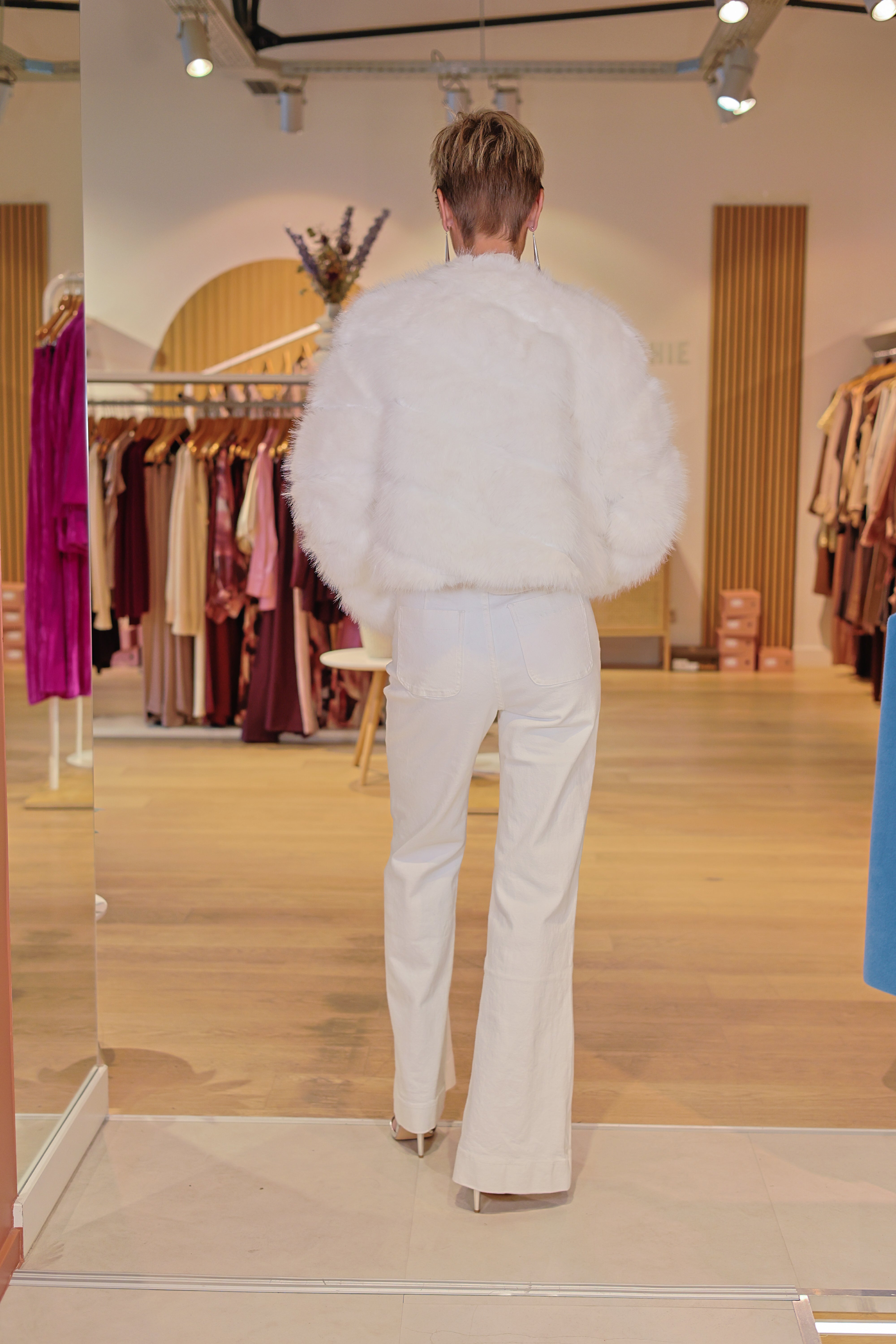 Éclatante et sophistiquée, la veste Éléanore blanche en fausse fourrure illumine instantanément toutes vos tenues. Son blanc pur et sa texture soyeuse en font un incontournable pour un look d’hiver chic et féminin. À la fois légère et chaude, elle apporte cette touche glamour qu’on adore pour les fêtes ou les sorties élégantes.
